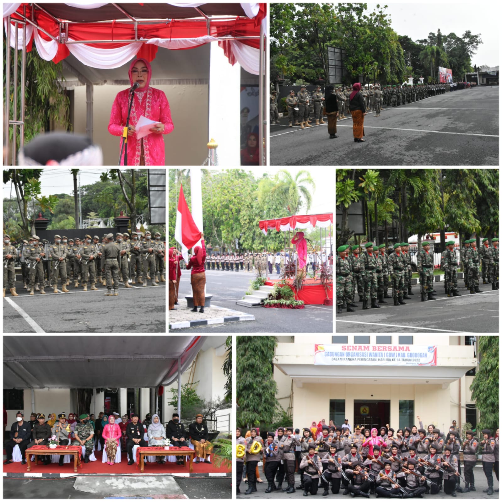 Ibu Bupati Grobogan menjadi pembina Upacara Hari Bela Negara ke 74 dan Hari Ibu ke 94 bertempat di halaman Setda Kabupaten Grobogan. Jumat, 23 Desember 2022.